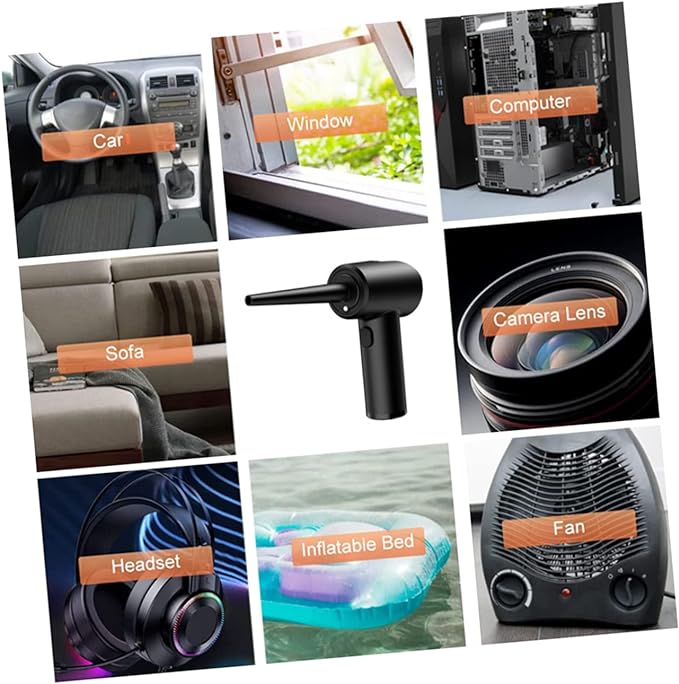 - 💨 Electric Air Blower: This compressed air duster is a versatile tool that effectively cleans all particles or stubborn debris from keyboards, USB ports, windowsills, decorations, air conditioners, refrigerator and freezer vents, and any hard-to-reach areas.